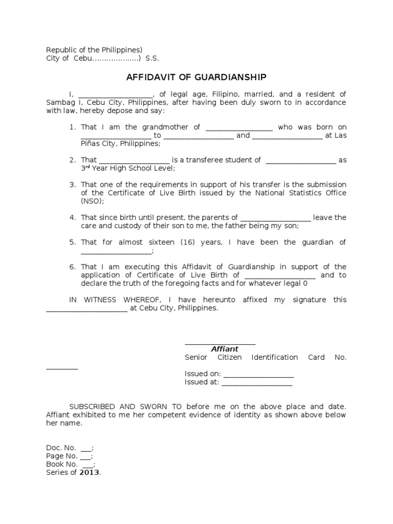 Affidavit of guardianship for minor. Please do not complete both the caregiver's authorization affidavit and the petition for guardianship packet. Administrators and writers of this site is not affiliated nor related to the agency nor to its. Can one be a guardian without the need for an affidavit? Pembo makati city, after being duly sworn to in accordance with law, depose and state that: